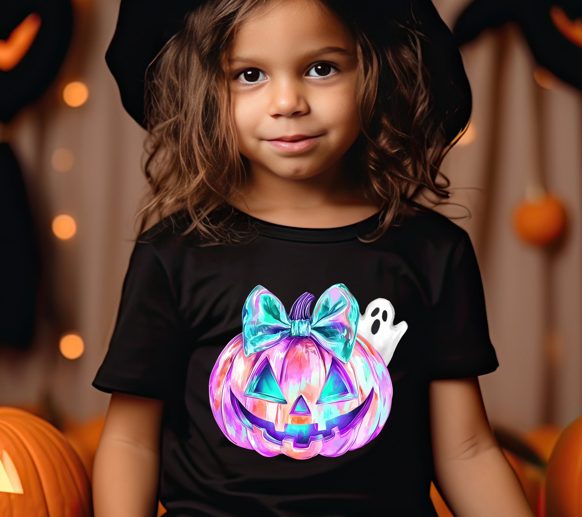 Youth/Toddler Neon Pumpkin Glow with Bow & Ghost Tee / Baby Bodysuit” 🎃👻✨🎀